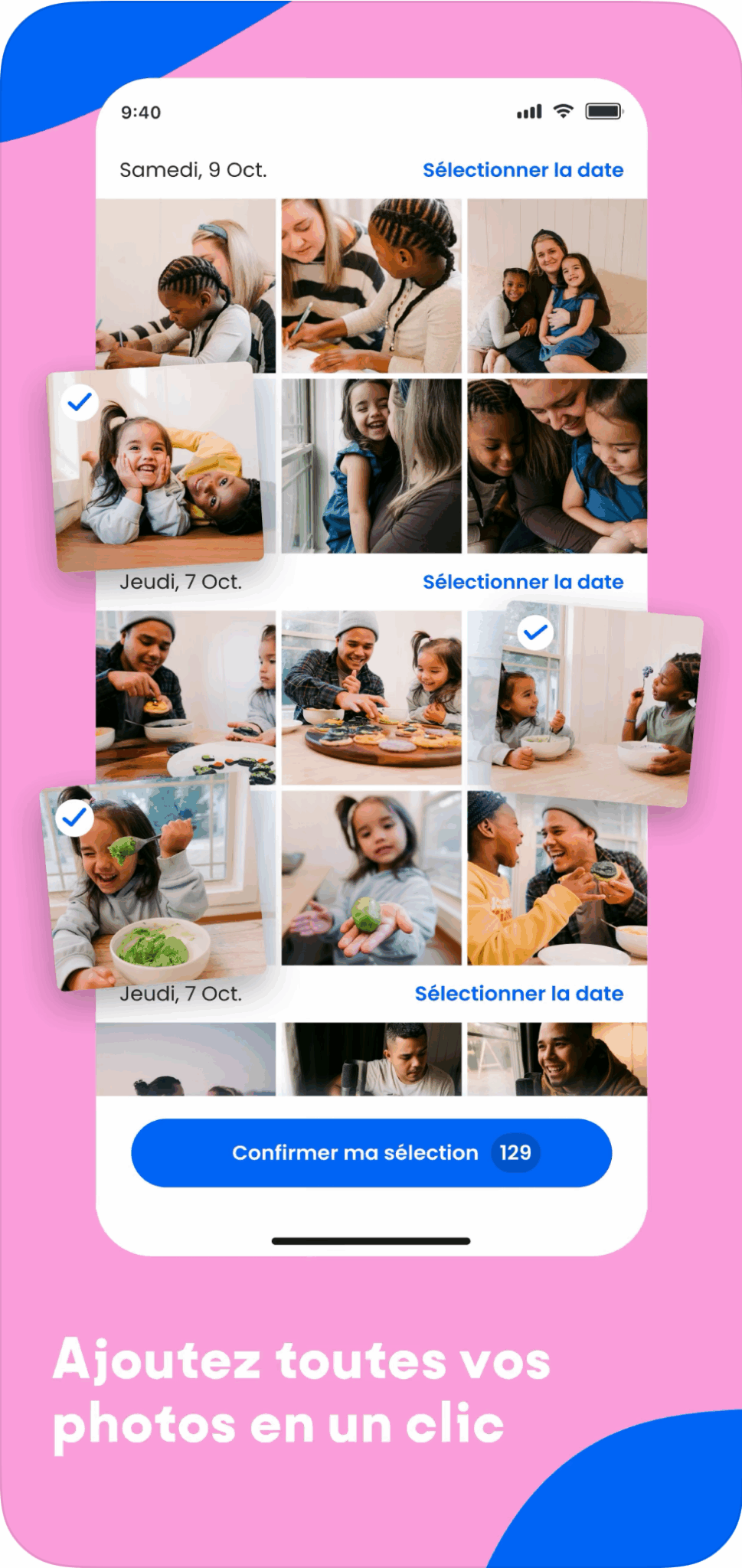 Analyse de vos photos, organisation chronologique et harmonieuse, suggestion de mise en page idéale. L'album parfait en 3 clics seulement. -