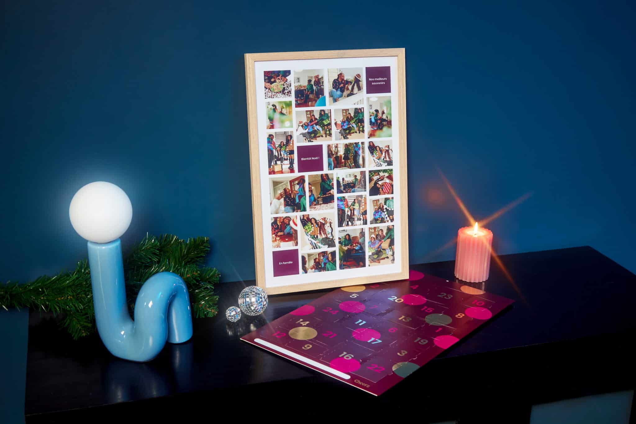 Découvrez le premier calendrier de l’Avent qui reste après ! Oui oui, vous avez bien entendu ! Le calendrier photo, aussi appelé le calendrier durable (🌳) : c’est 24 cases à ouvrir pour découvrir ou redécouvrir chaque jour une jolie photo ! Et devinez quoi ? Le 25, votre calendrier se refait une beauté et se transforme en superbe poster photo ! Il suffit de lui retirer sa pochette pour découvrir une jolie mosaïque de vos photos préférées ! Canon non ?